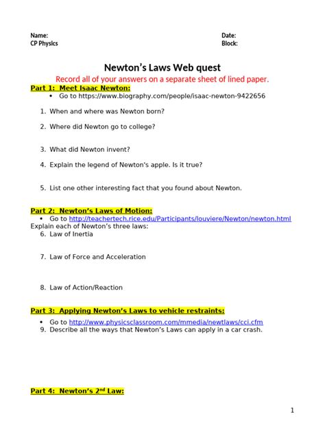 Download Answer Key To Newtons Laws Webquest PDF